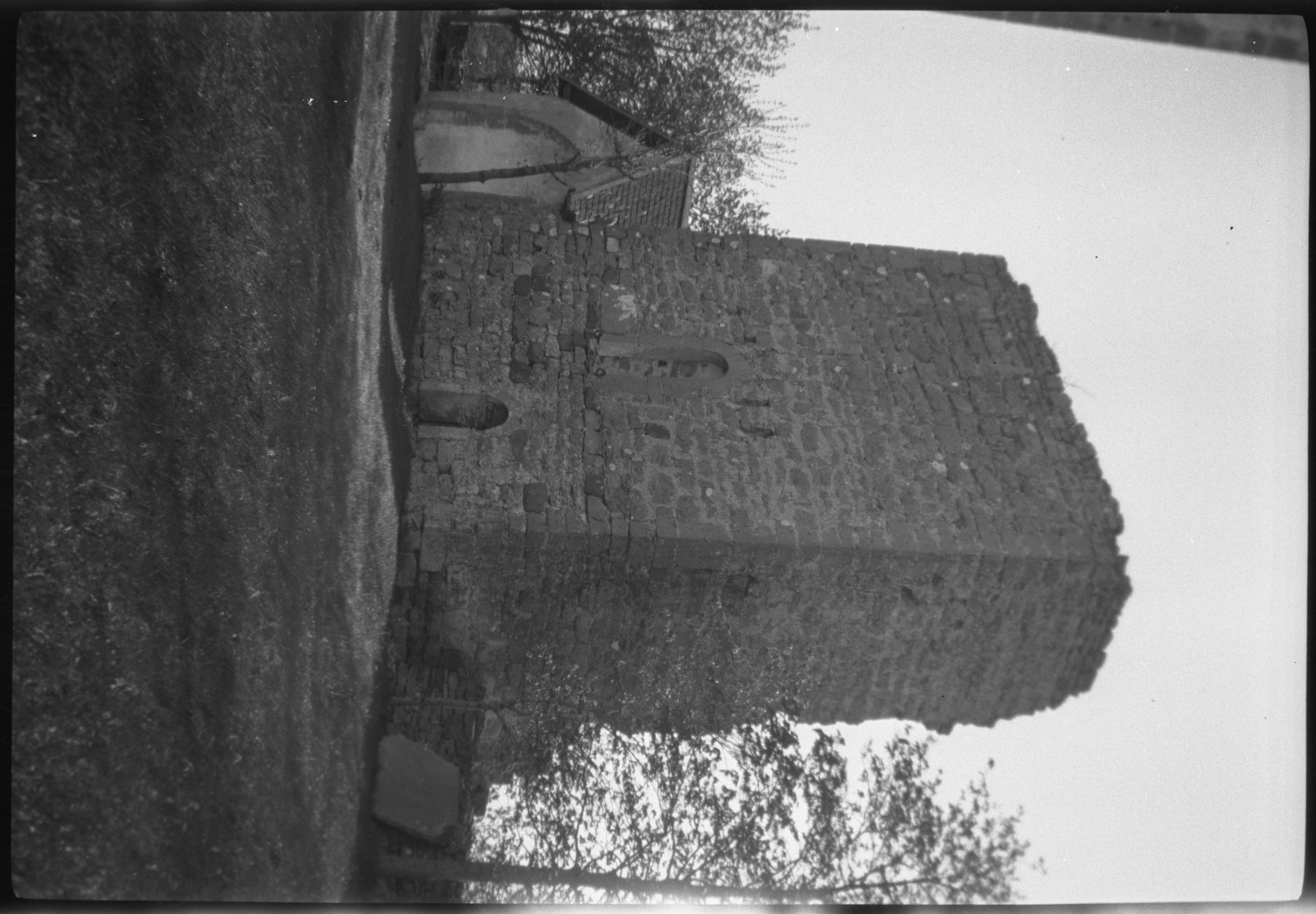 Västra stigluckan och kastalen från nordöst. Kor, absid och sakristia från 1200-talet. Torn påbörjades 1200-talet slut och fullbordes mitten 1300-tal. Anslut till kyrkan finns en kastalruin som användes som ett försvarstorn.