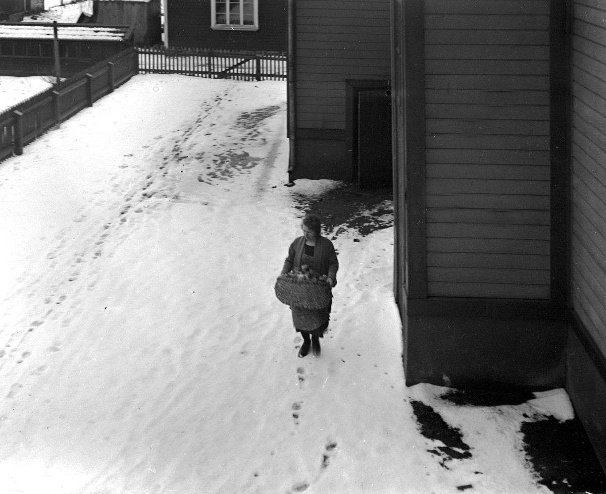Lisa bär upp ved.