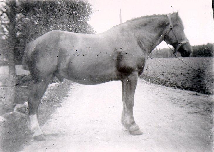 Hästens troliga ägare: Torsten Claesson, mejerist, Döve, Börstig. Foto troligen Einar Dahlén på 1910-20 talet.