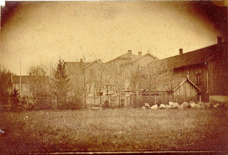 Det hus som revs, när Forsska huset byggdes. Till vänster det lilla trähuset.