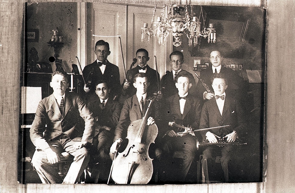 Medlemmar ur Falköpings orkesterförening. Fotot är taget i Emil Nyréns hem.