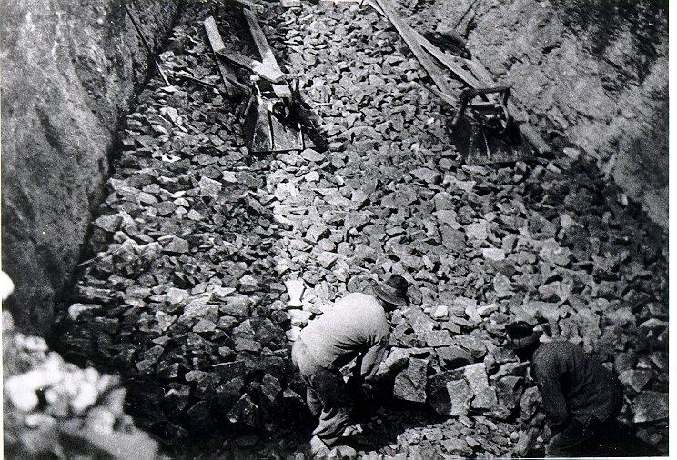 Uddagården, kalkugn, inläggning av skiffer och kalk.