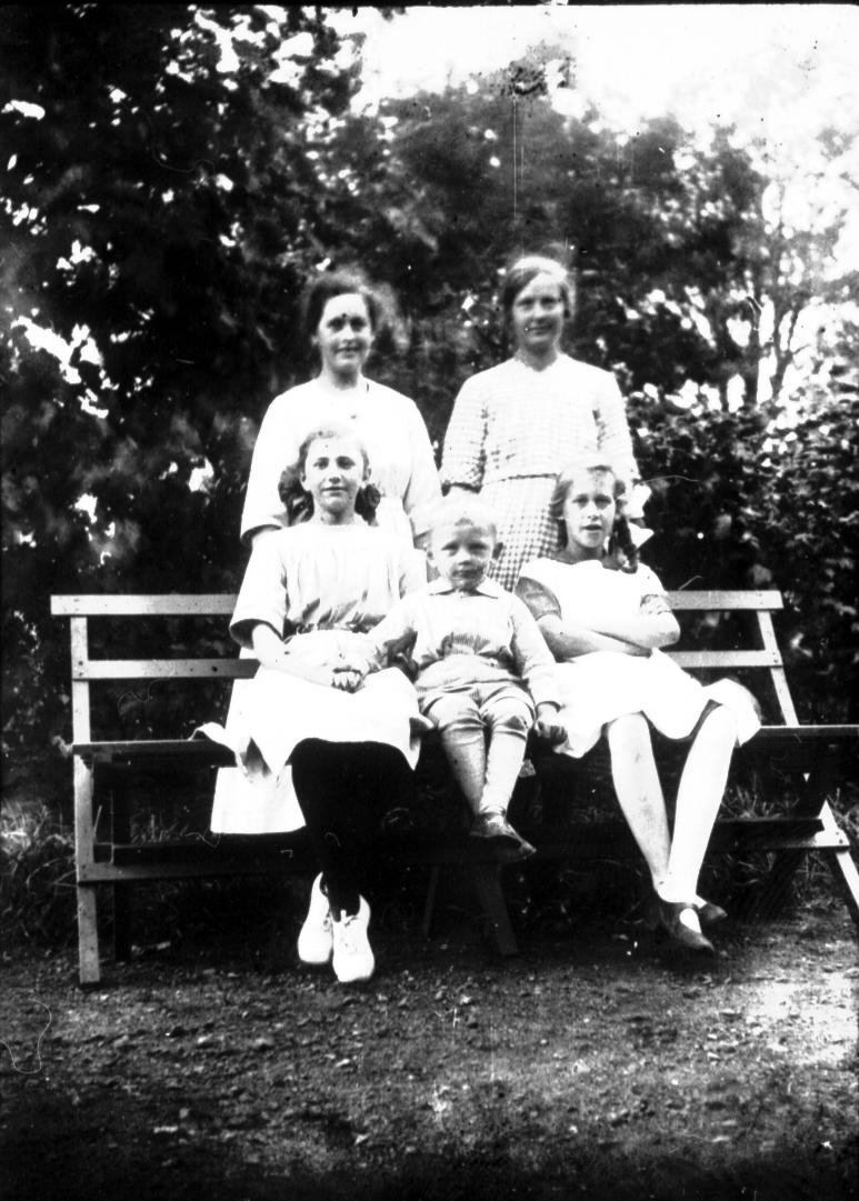 Edit, Ester, Karin, Harry S och Elvy, sommarbarn hos Emma och Henrik.