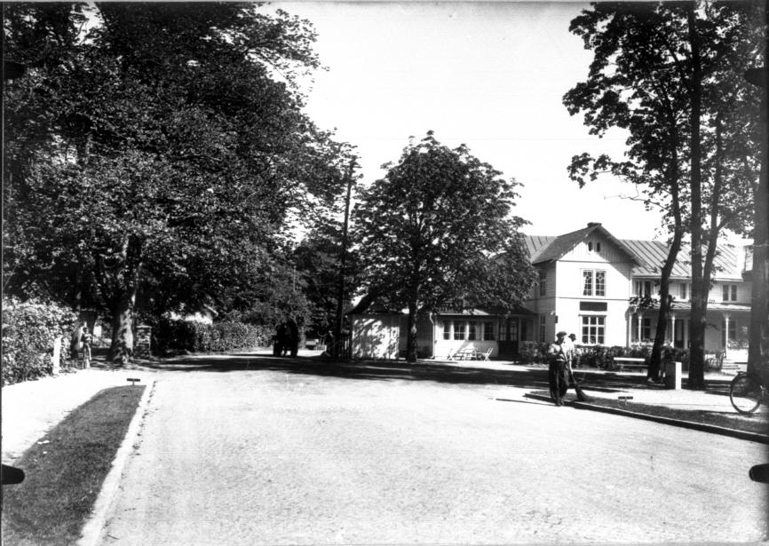 Gatsopare vid Danska Vägen. Nya hotellet i fonden.
