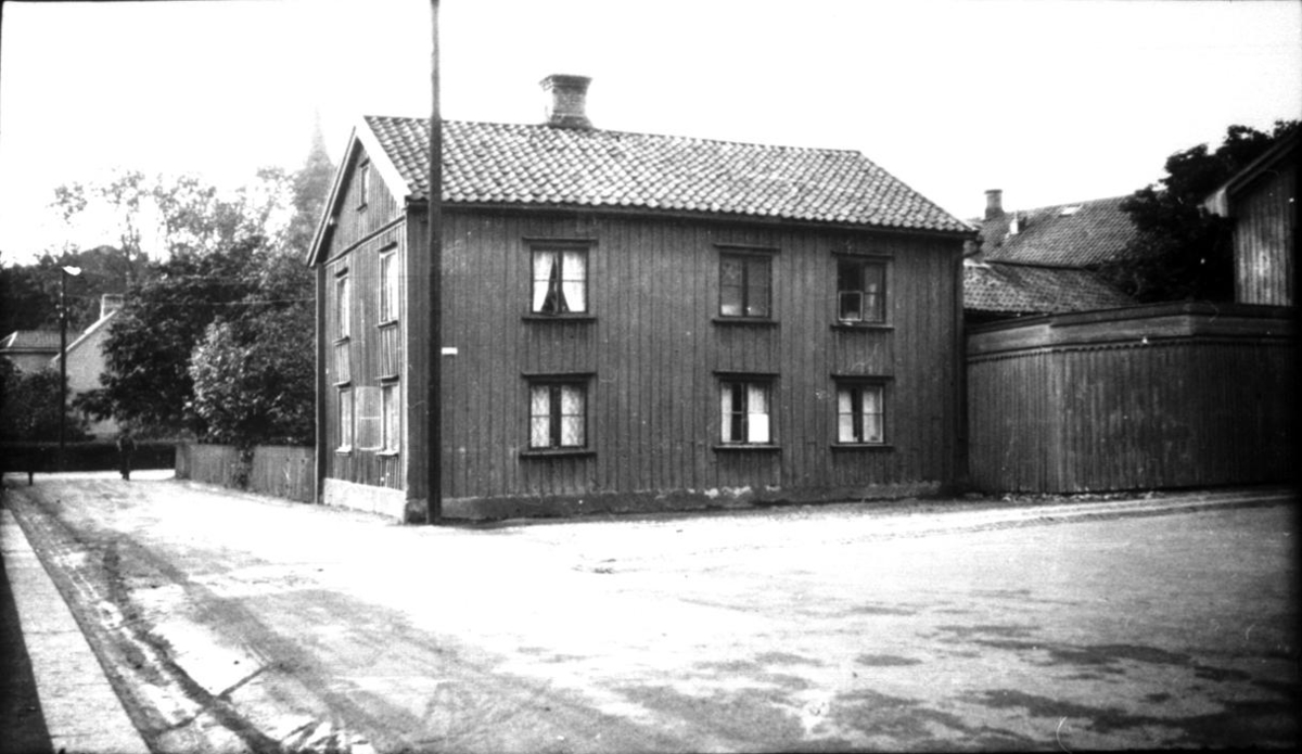 Nygatan mot nordväst, Trätorgets sydvästra hörn. Längst ned skymtar Landbogatan.