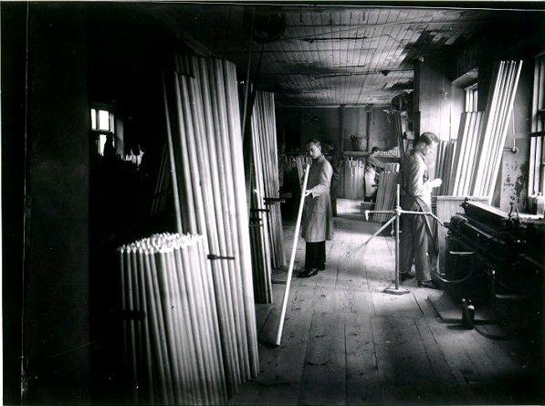 Haglunds rullgardinfabrik. Lagerplats för käppar före 1930.
