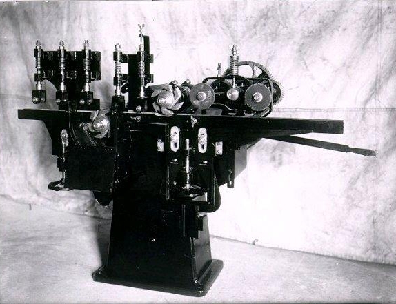 Haglunds rullgardinfabrik. Hyvelmaskin för käppar ca 1950.