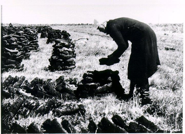 Risholmens torvindustri. Torvarbete. Oidentifierad kvinna, troligen från Ungern, kupar torven.
