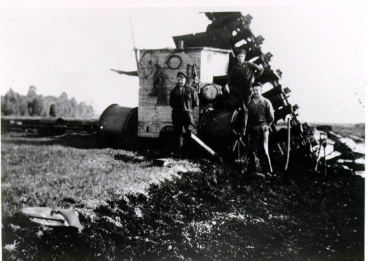 Risholmens torvindustri. Torvupptagning med hjälp av Hässleholmsverket. Från vänster: John Karlsson, Gustav Lindgren och Arvid Johansson.