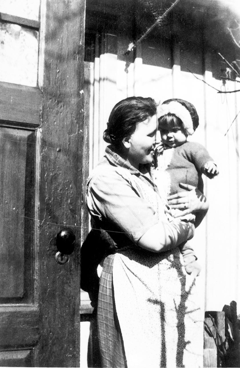 Edla Adolphsson med dottern Britta 1930. Botvidsgatan 55, köksingången.