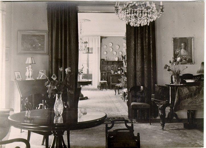 Kv. Glasmästaren, Trädgårdsgatan 25. Hörnet av Dotorpsgatan - Trädgårdsgatan. Interiör av dir. Herman Rehmarks fastighet. Tidigare C.H. Gustafssons. Rehmark övertog 1926 spannmålsfirman C.H. Gustafsson i Falköping.
