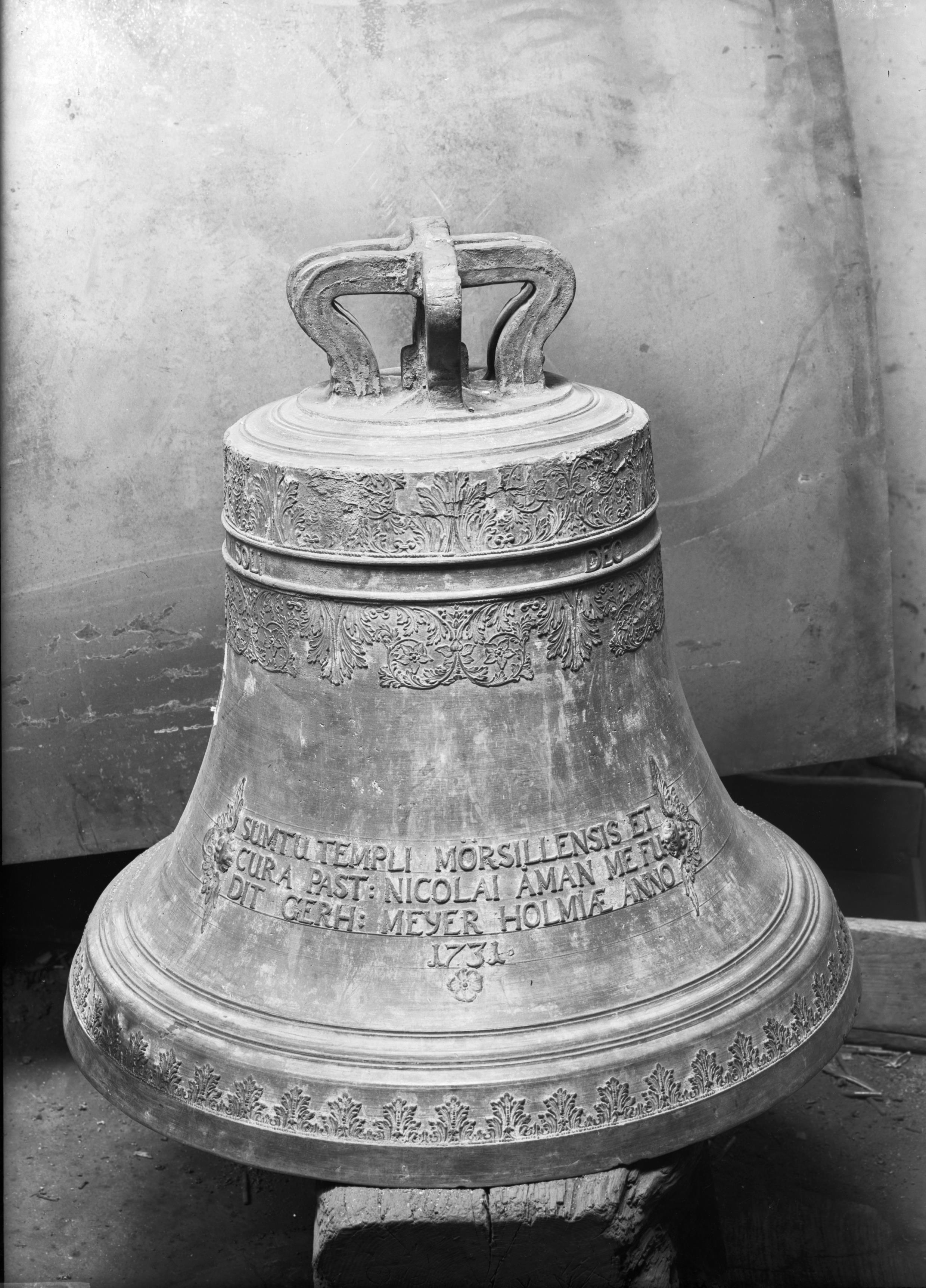Kyrklocka av malm. Gjuten av Gerhard Meyer, 1731.