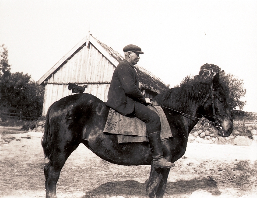 Johan Lundvkist från Grolanda och en höna på hästryggen.