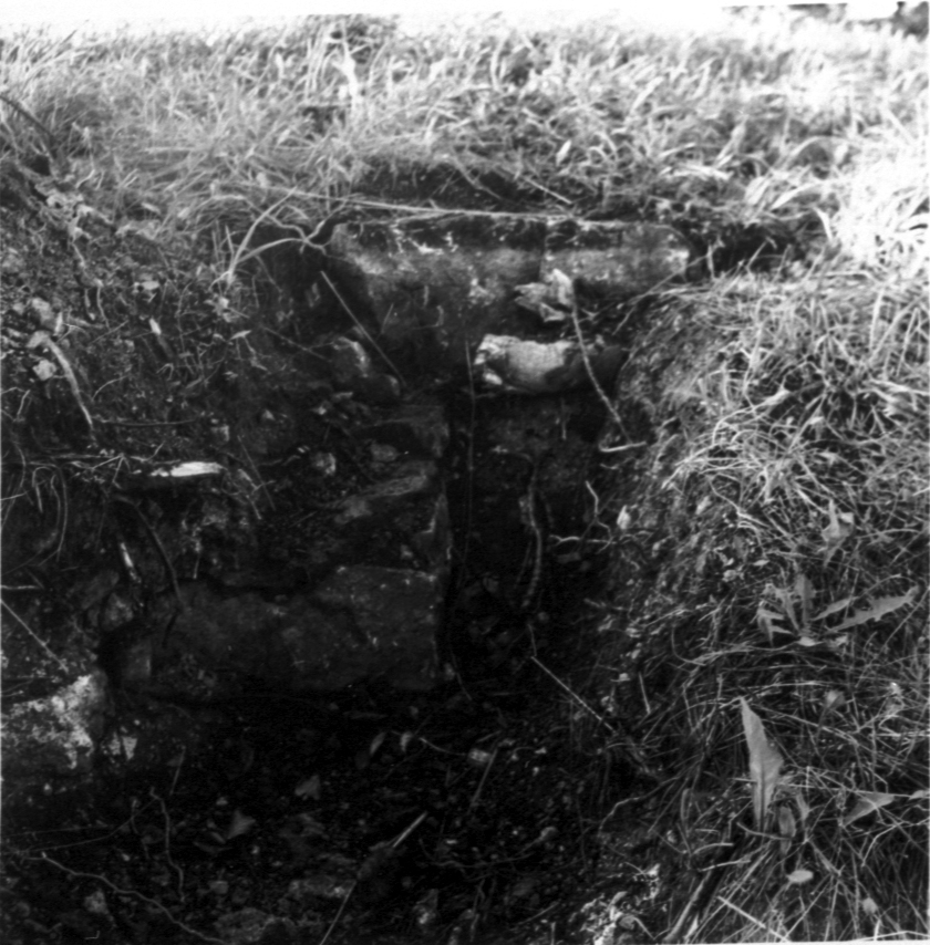 Hornborga kyrkoruin. Från förundersökningen 1954. Provschakt.