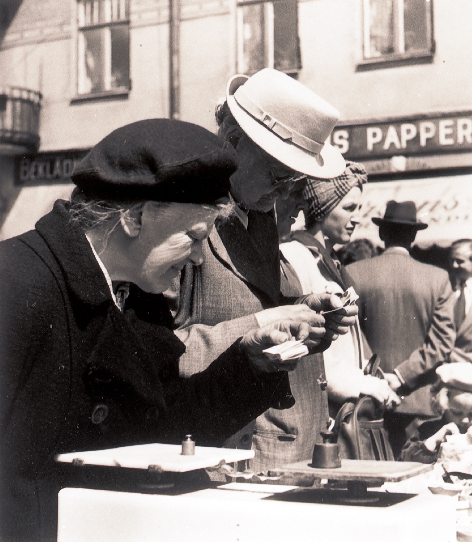 Från fröhandeln på Stora torget. Från utställningen "Falköping i bild" 1952.