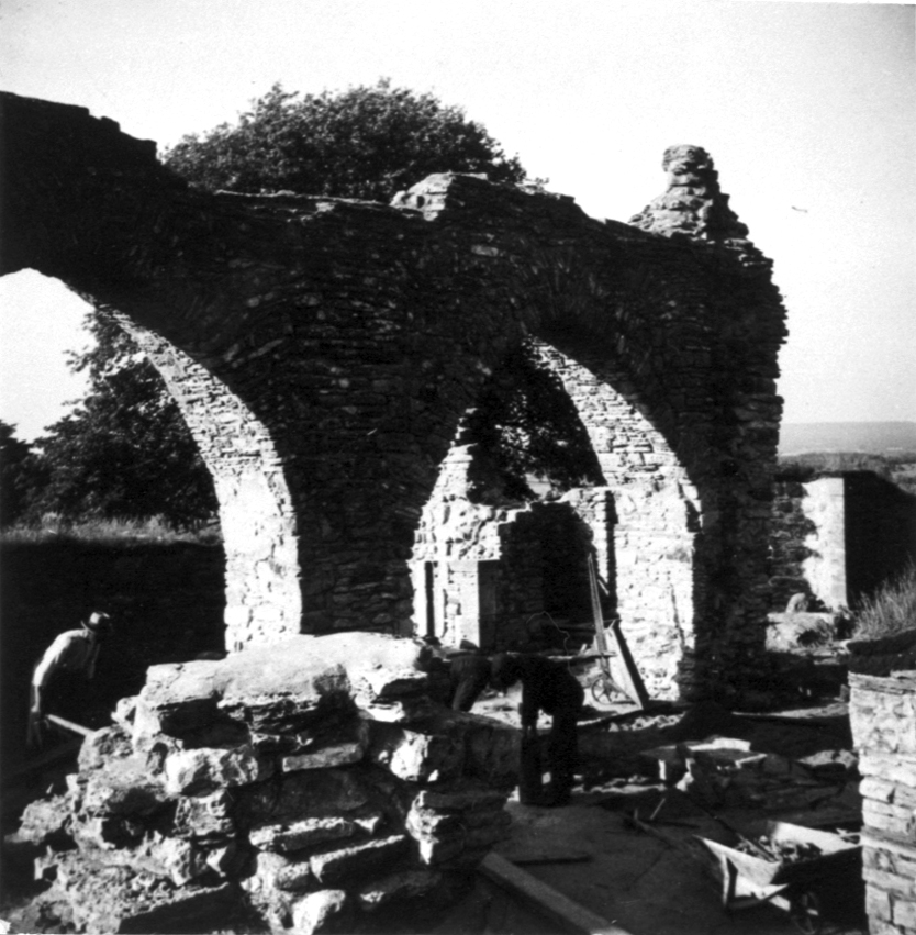 Gudhems kloster. Vid de båda valvbågarna, delar av norra arkadräckten.