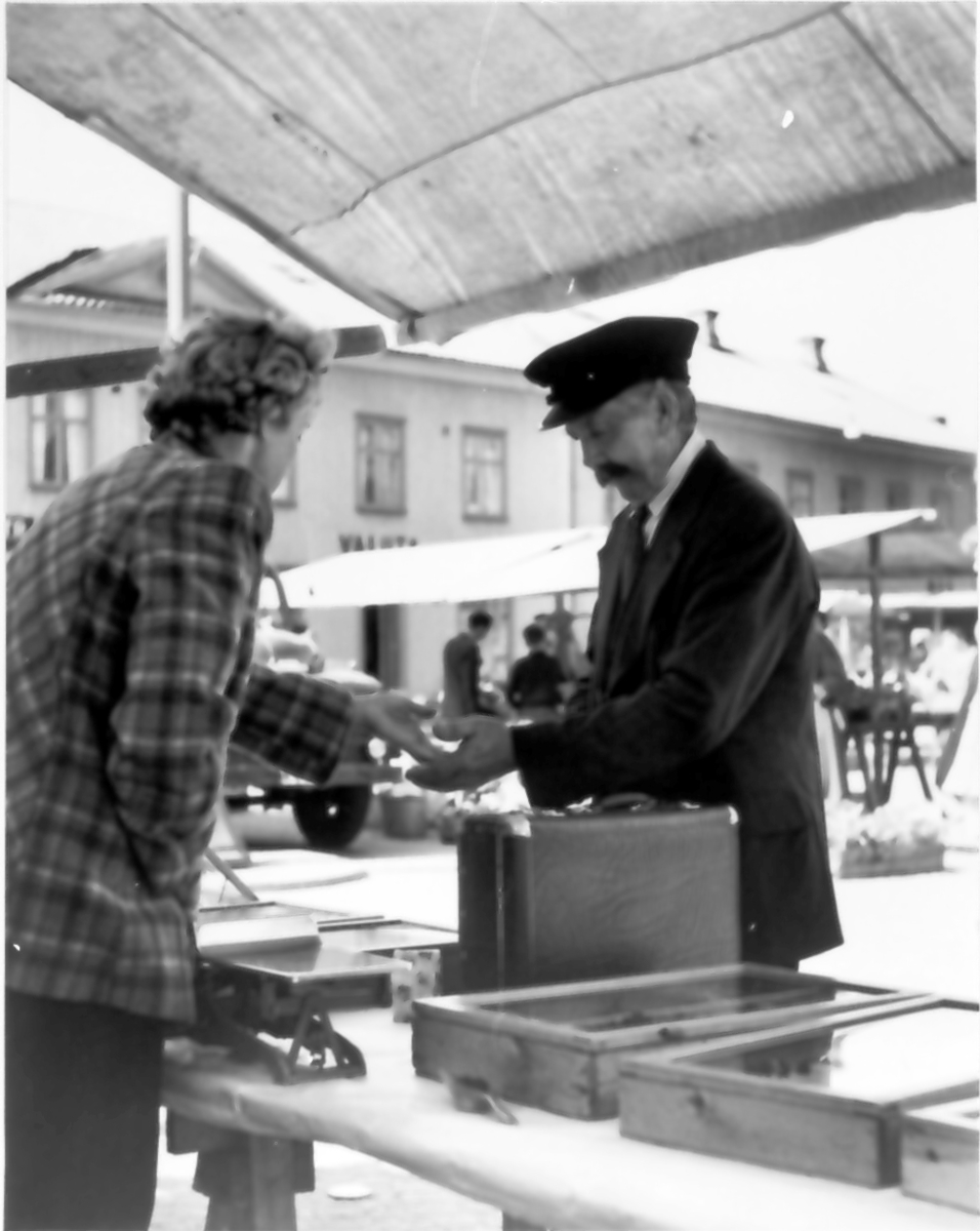 "Pengar tillbaka". Från utställningen "Falköping i bild" 1952.