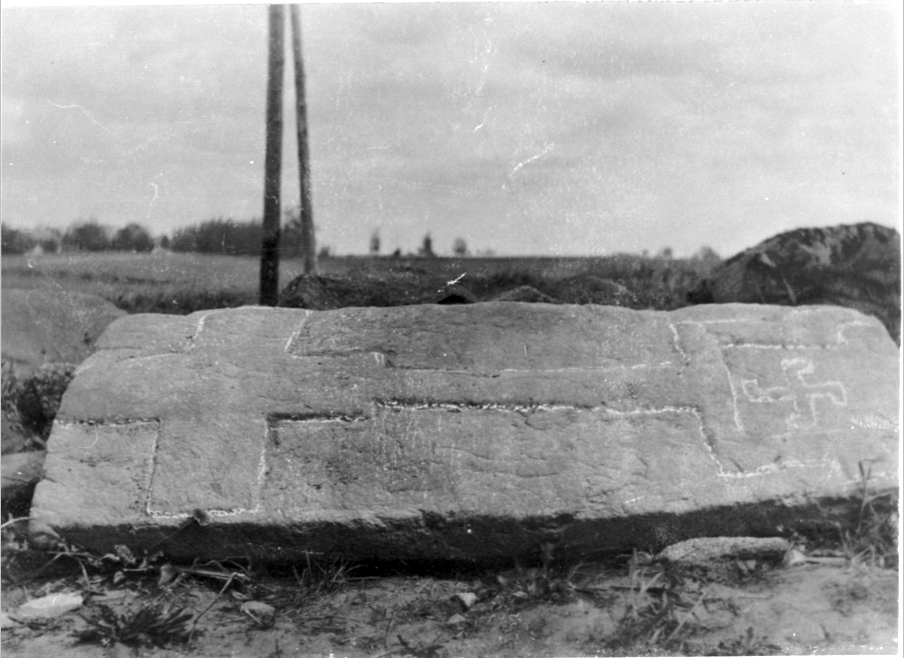 Medeltida gravsten från Näs gamla kyrka. Hittad i skorstensmuren till gamla skolan vid dess rivning 1927. Troligen ditinlagd på 1860-talet. Inlöst 1928 av SHM.