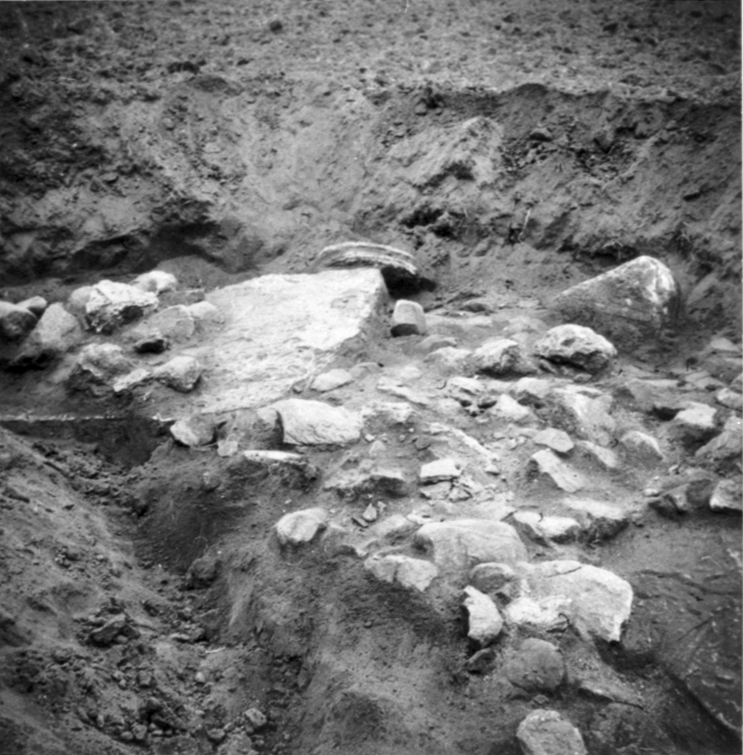 Backgården och Junkragården. Gravfält. Stenpackning av skärvig sten och flat häll.