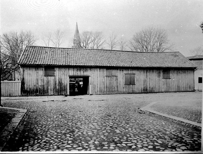 Helsingstomten. Nu Falköpings Tidnings tomt. S:t Olofs kyrka i bakgrunden.
