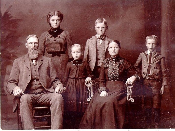 Alfred Hedström med familj: Hedström, farmare i Amerika. Äldre broder till smörjare Bergqvist. Alfred Hedström född i Luttra 1.10.1854, död i U.S.A. 1923, son till f.d. soldaten Johannes Hedström, Nygatan 19, Falköping.
