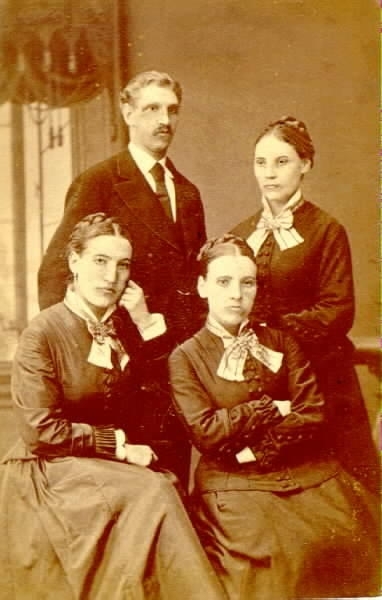 J.V. Ander med systrar, Carolina Wilhelmina (Mina) till vänster.