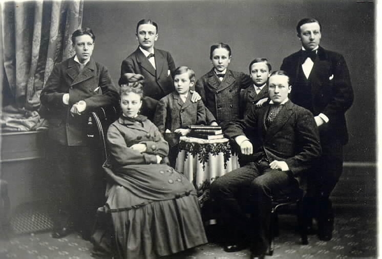 Syskonen Hollender. Arvid, Leopold, Sigurd, Valdemar, Yngve, Ernst. Sittande: Elma och Mauritz.
