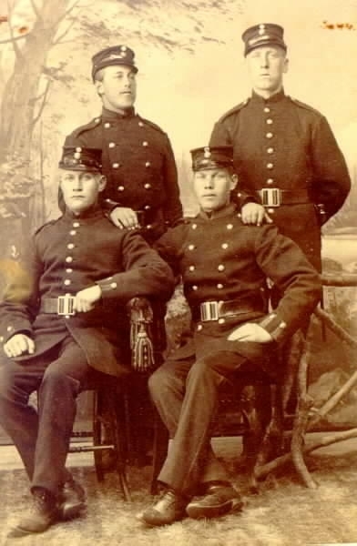 4 "Karl-ar" från Ranten som beväringar på Axvall 1892. Stående från vänster: Karl Hedström, Karl Jansson. Sittande från vänster: Karl Noring, Karl Hultgren.