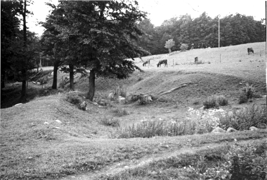 Varnhem. Kanal från medeltiden strax söder om Varnhems kloster. Foto mot norr.