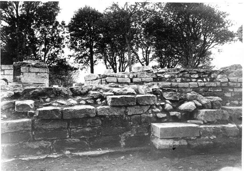 Kyrkan koret. Norra sidokorets utsida. Foto mot söder. Hörn med skråkant.