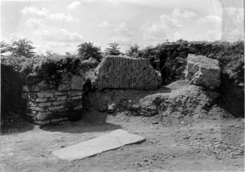 Bågar (Långhusets södra arkad). Nedrasade bågar. Foto mot sv.