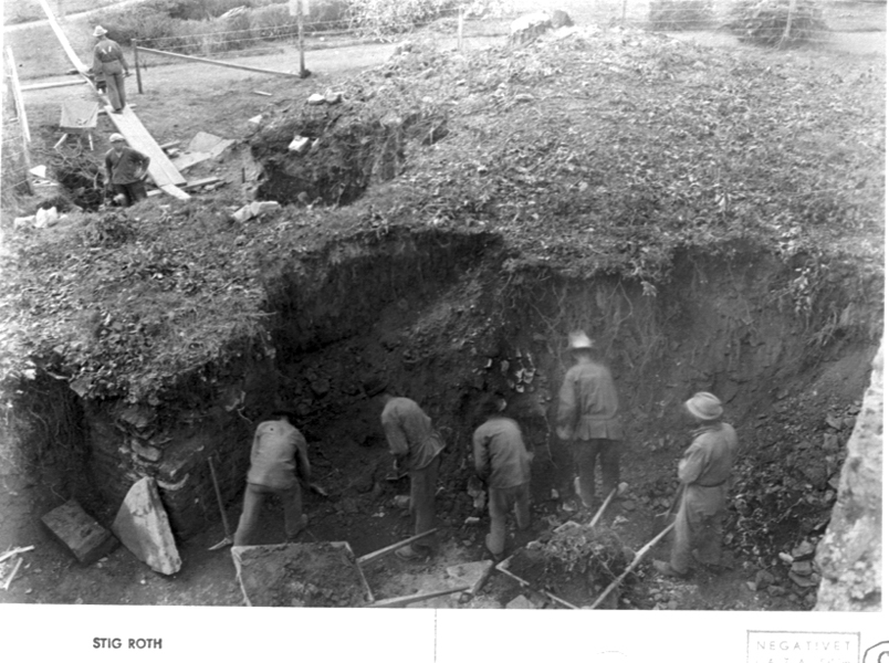 Arbetslag i kyrkoruinen s.v. del. Foto mot s.v.