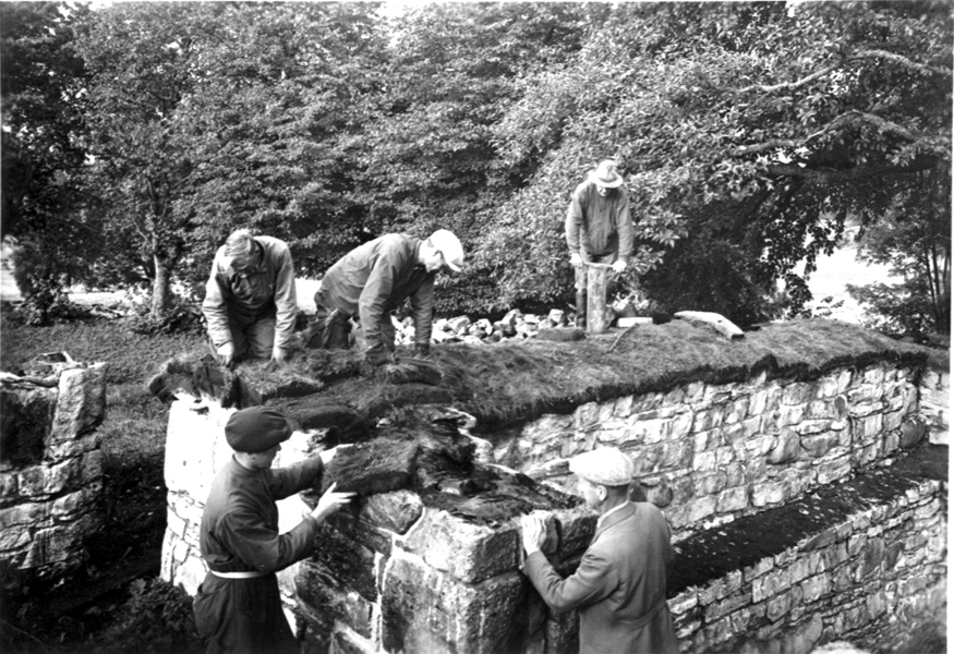 Gudhems kloster. Torvning av murkrön på Cellarium. D.749