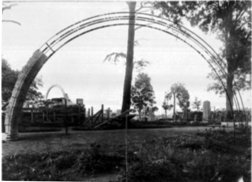 Titel: Båge sammansatt av valvstenar vid klosterruinen.