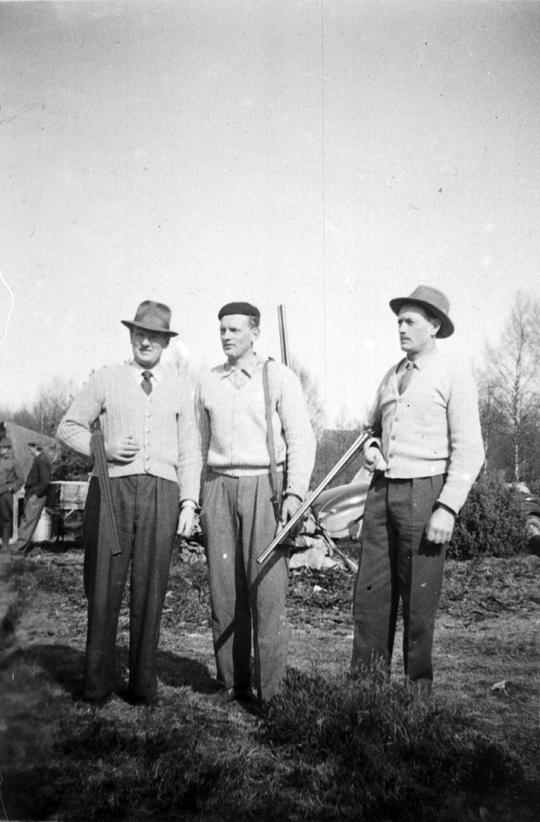 Bröderna Nils, Paul och Gösta Johansson på jaktstig.