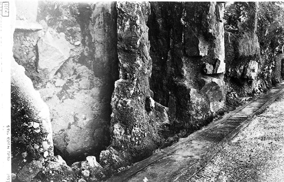 Kafleska gravkoret under framgrävning från ö, i förgrunden tunnvalvet.