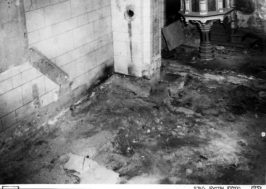 Interiör mot norr under restaureringen. Medeltidskorets nordmur blottad.