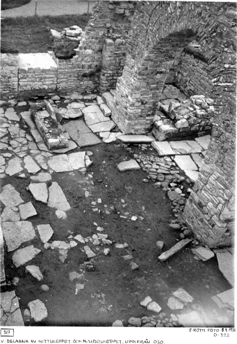 Västra delarna av mittskeppet och norra sidoskeppet, uppifrån ostsydost.