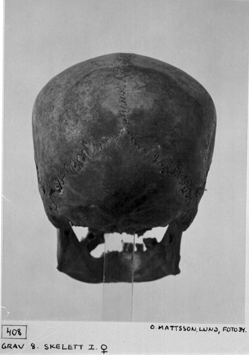 Ett kranium från baksidan, grav 8.