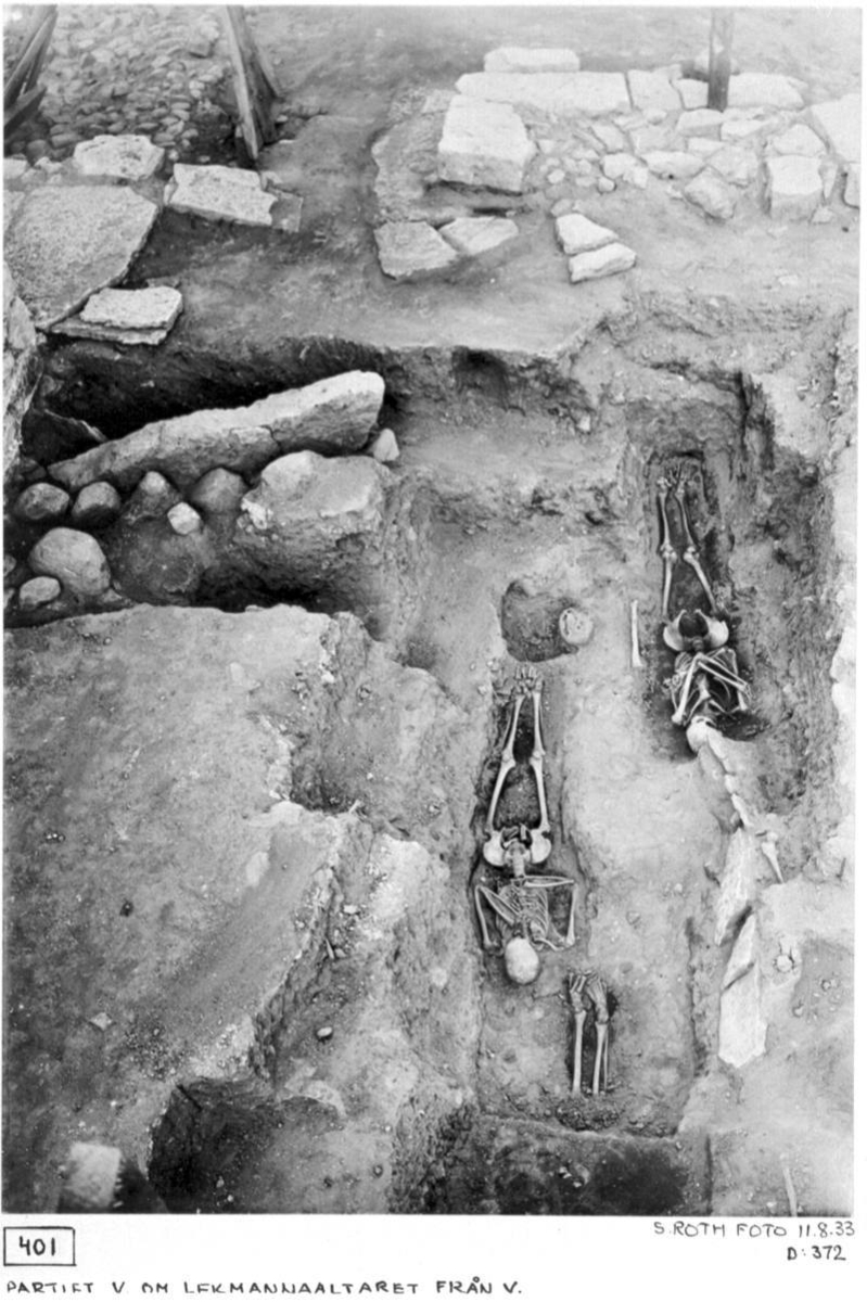 Partiet väster om lekmannaaltaret från väster. Avslagen rest sten, grav 9.