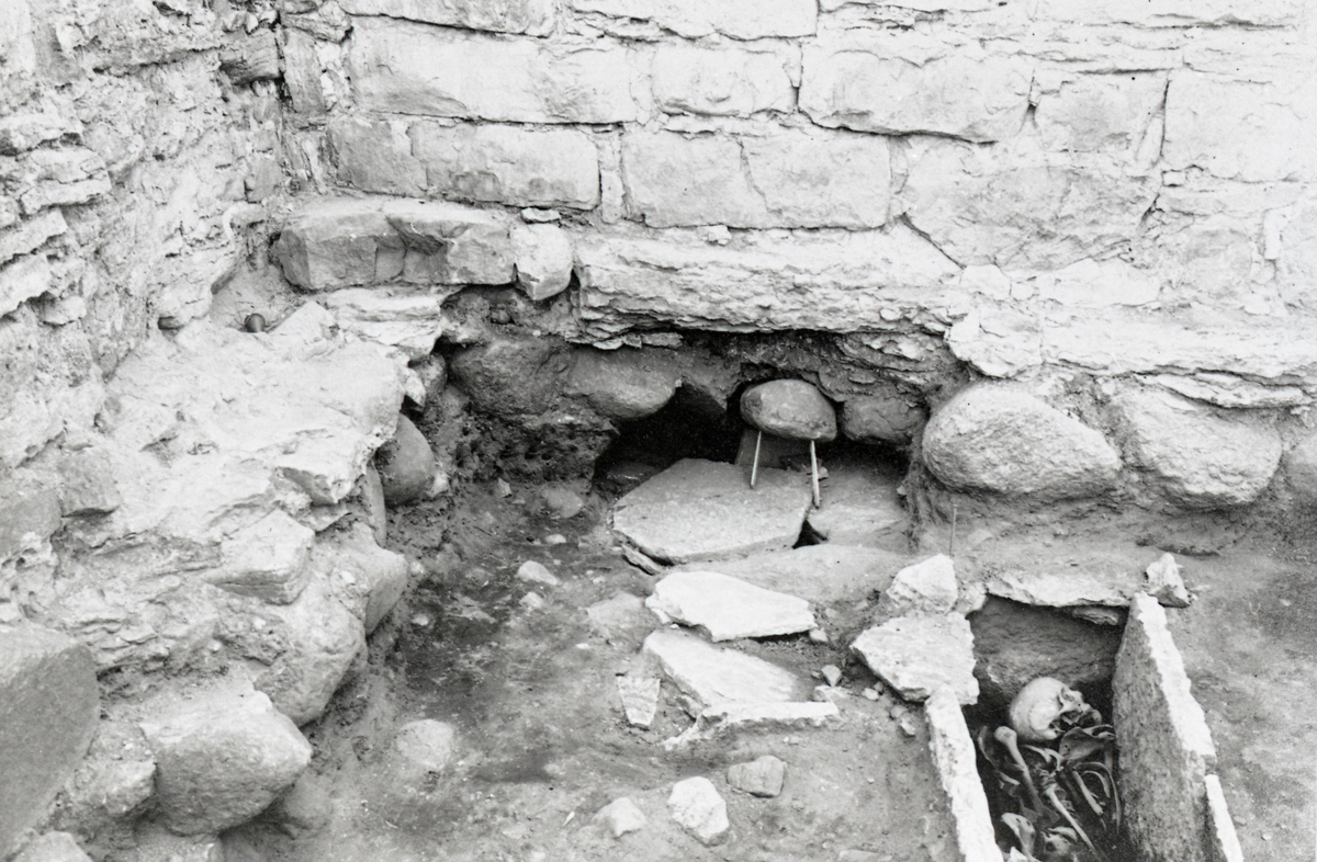 Kapitelsalens sv. hörn från öster. Grav 11 (oöppnad) Grav 12 (öppnad).