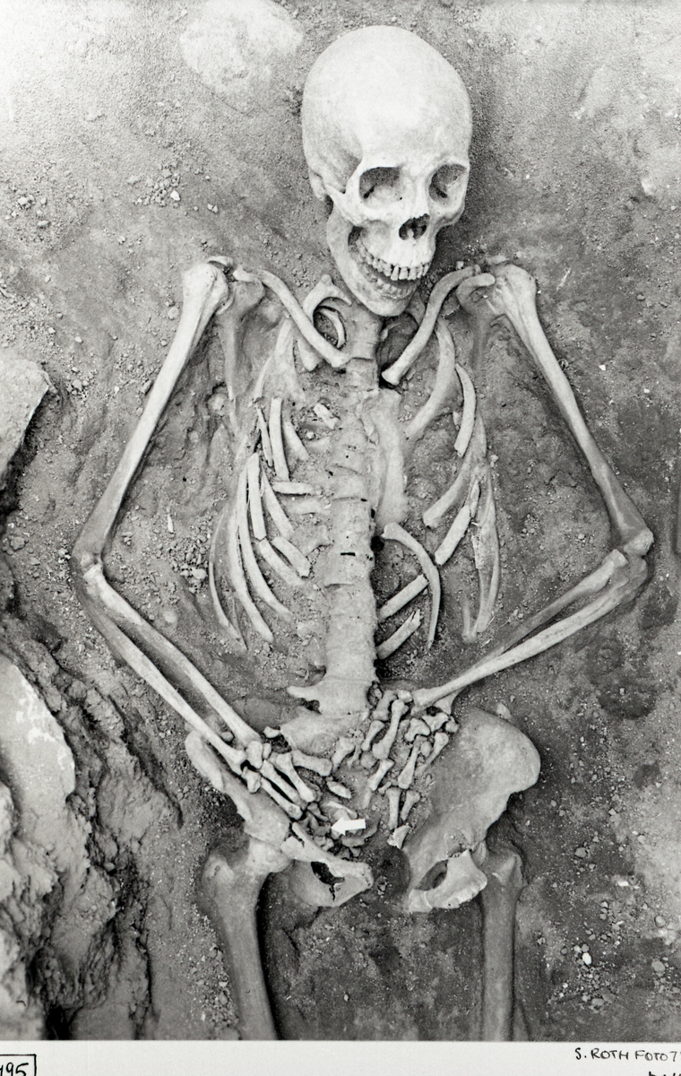 Grav 21. Vid pilen ring 1935:52, kranium avgjutet.