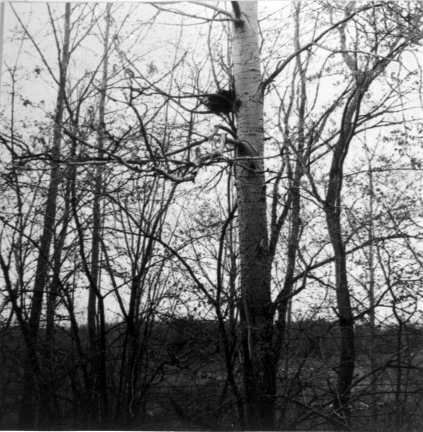 Fågelbo i en asp vid gamla landsvägen, byggt 1958. Platsen kallas "Ållebergs änne".