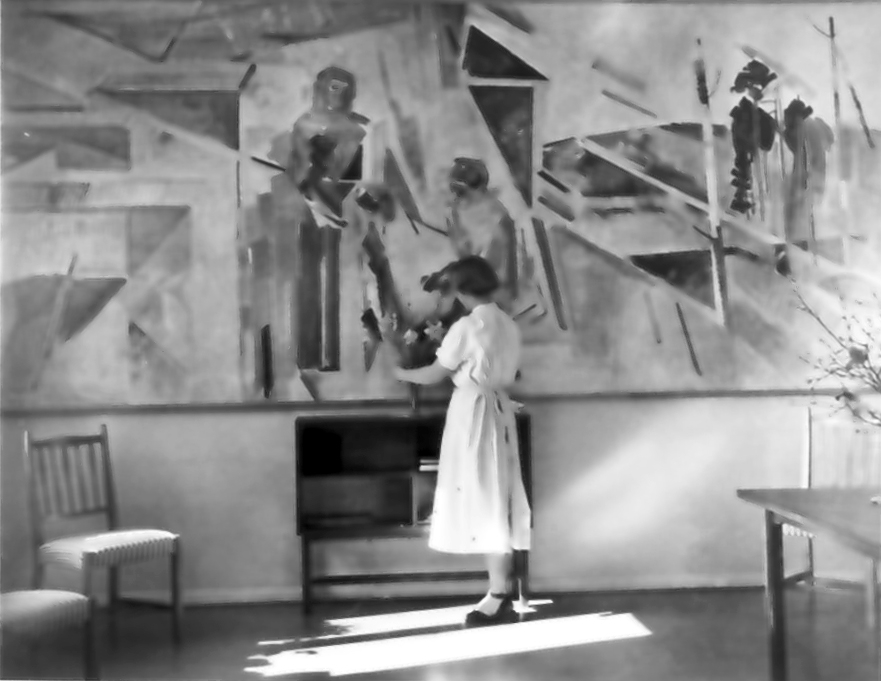 "Friska blommor" (från doprummet på B.B. med Birgitta Liljeblads väggmålning). Från utställningen "Falköping i bild" 1952.