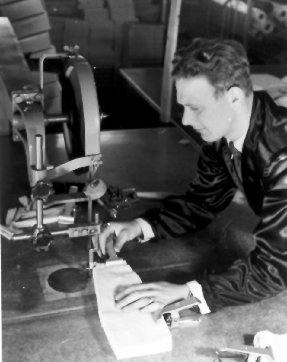 "Bandtillskärningsmaskin" (Svaréns). Från utställningen "Falköping i bild" 1952.