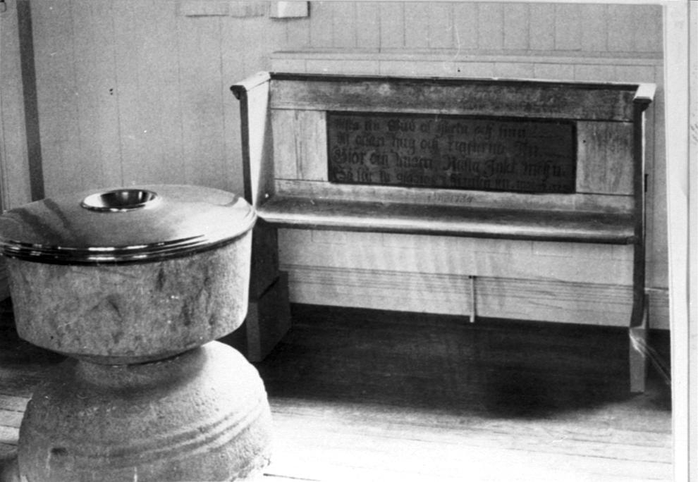En av de två brudbänkarna i Vilske-Kleva kyrka.