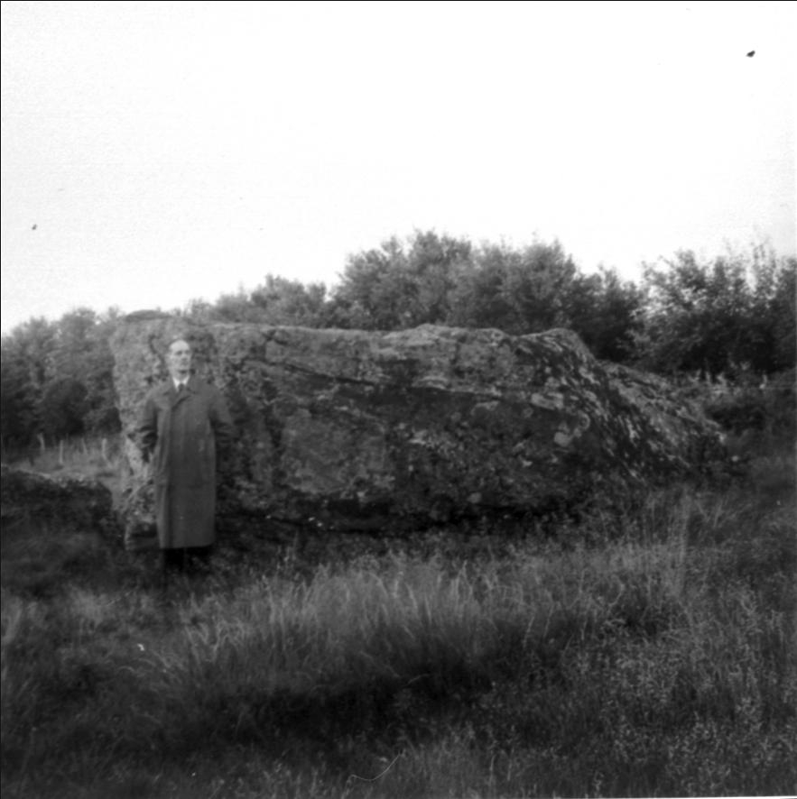 Naturminne flyttblock i utmark. (Storlek 6 x 5,5 m med plan överyta och lodräta väggar. Tjocklek 1,6 m i nordvästra hörnet 2 m i västra hörnet.)