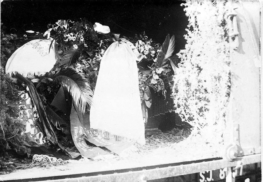 Viktor Rydbergs kista i järnvägsvagn som passerar Rantens järnvägsstation 1895.