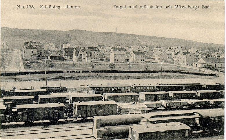 Falköping-Ranten, bangården, Rantens torg, Villastaden, Mösseberg.