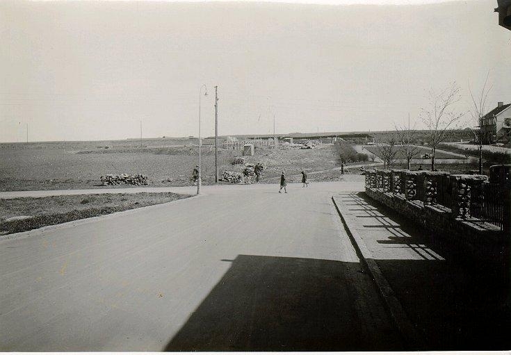 Kv. Midgård, Kyrkerörsgatan. Muren tillhörde Stora Hotellet. Öster om Stora Hotellet ligger parkområdet Humlegården. Rätt ovanför flickorna har Kyrkerörsgatan förlängts till Dotorpsgatan.